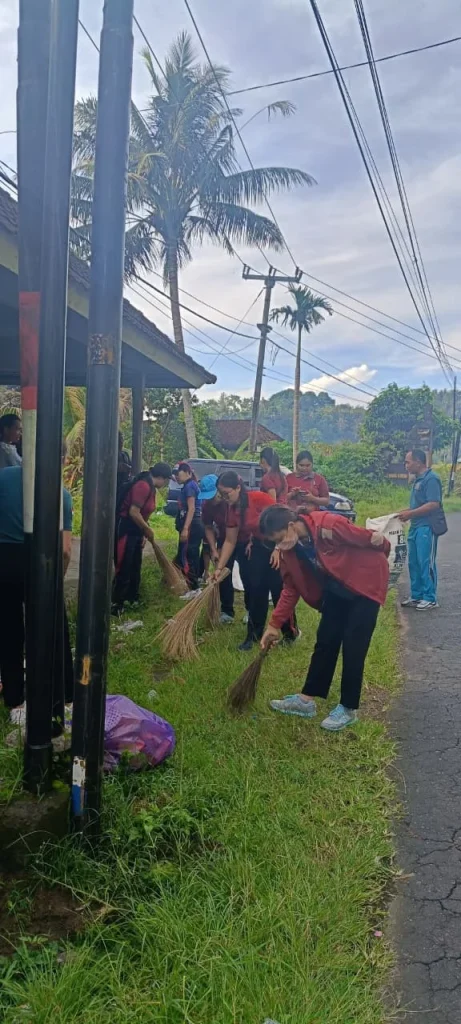 Selanjutnya, kegiatan dilanjutkan dengan gotong royong pemungutan sampah plastik di sepanjang Jalan Lettu Dugdugan serta pembersihan lingkungan di sekitar Kantor Desa Tiyingtali. Kegiatan ini bertujuan untuk meningkatkan kepedulian masyarakat terhadap kebersihan lingkungan dan menciptakan suasana desa yang bersih, sehat, dan nyaman.