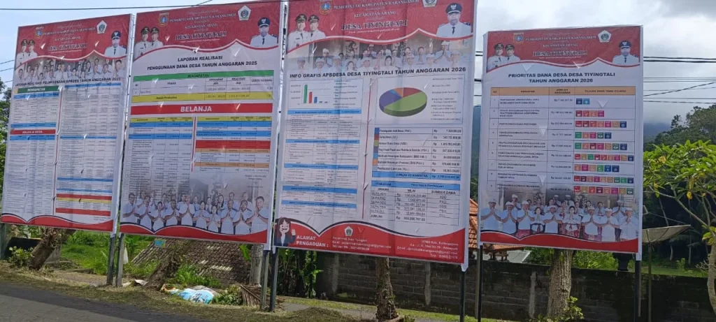Pada Kamis, 5 Pebruari 2026, bertempat di Desa Tiyingtali, Pemerintah Desa Tiyingtali bersama BPD Desa Tiyingtali, Ketua LPM, Babinsa, Bhabinkamtibmas, serta staf BUMDesa Dana Artha Mekar melaksanakan kegiatan pemasangan spanduk informasi desa. Spanduk yang dipasang meliputi Pertanggungjawaban APBDesa Tahun Anggaran 2025, APBDesa Tahun Anggaran 2026, Laporan Pertanggungjawaban Penggunaan Dana Desa Tahun 2025, serta Prioritas Penggunaan Dana Desa Tahun Anggaran 2026.