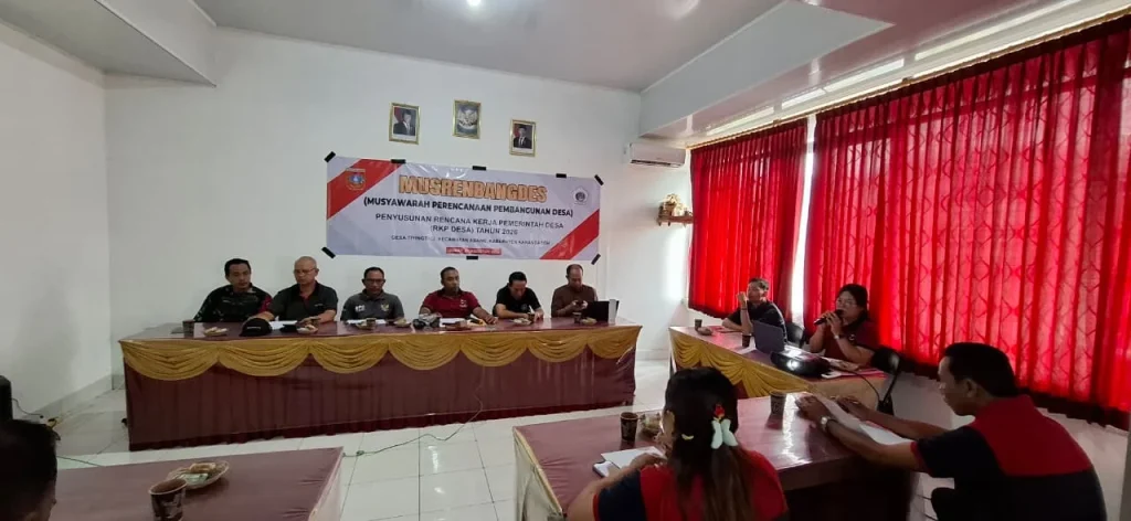 Tiyingtali, 29 Agustus 2025 — Pemerintah Desa Tiyingtali menggelar kegiatan Musyawarah Perencanaan Pembangunan Desa (Musrenbangdes) dalam rangka penyusunan Rencana Kerja Pemerintah Desa (RKPDes) Tahun 2026. Kegiatan ini berlangsung di kantor desa Tiyingtali dan dihadiri oleh berbagai unsur penting pemerintahan dan lembaga desa.