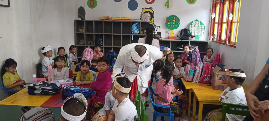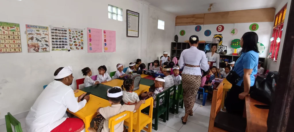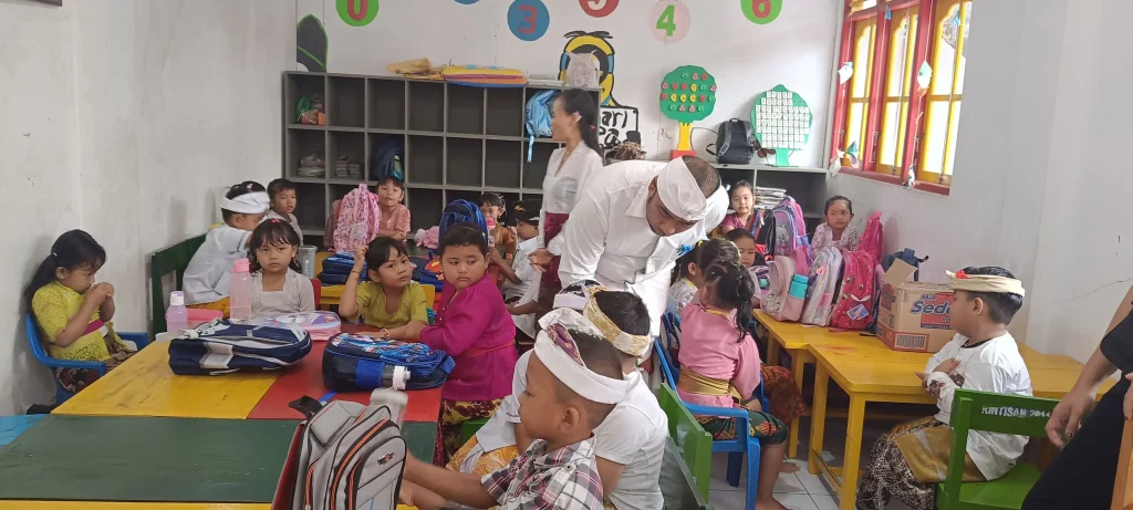 Perbekel turut hadir dalam kegiatan Masa Pengenalan Lingkungan Sekolah (MPLS) di PAUD/TK Dharma Santi Kumara, yang telah berdiri sejak tahun 2011. kegiatan MPLS ini berlangsung selama 5 hari dari hari senin, 21 juli 2025 sampai hari ini jumat, 25 juli 2025. Pada tahun ajaran ini, jumlah peserta didik mencapai 59 anak, terdiri dari 13 murid lama dan 46 murid baru. Kami mengucapkan terima kasih yang sebesar-besarnya kepada para guru yang dengan penuh kesabaran dan dedikasi mendampingi proses belajar anak-anak, meskipun masih banyak siswa yang memerlukan waktu untuk beradaptasi dan belum sepenuhnya mandiri. Semoga para guru senantiasa diberikan kesabaran dan ketulusan dalam mendidik generasi penerus bangsa. Kami juga menyampaikan apresiasi dan terima kasih kepada para orang tua yang telah mempercayakan pendidikan anak-anaknya kepada PAUD/TK Dharma Santi Kumara.