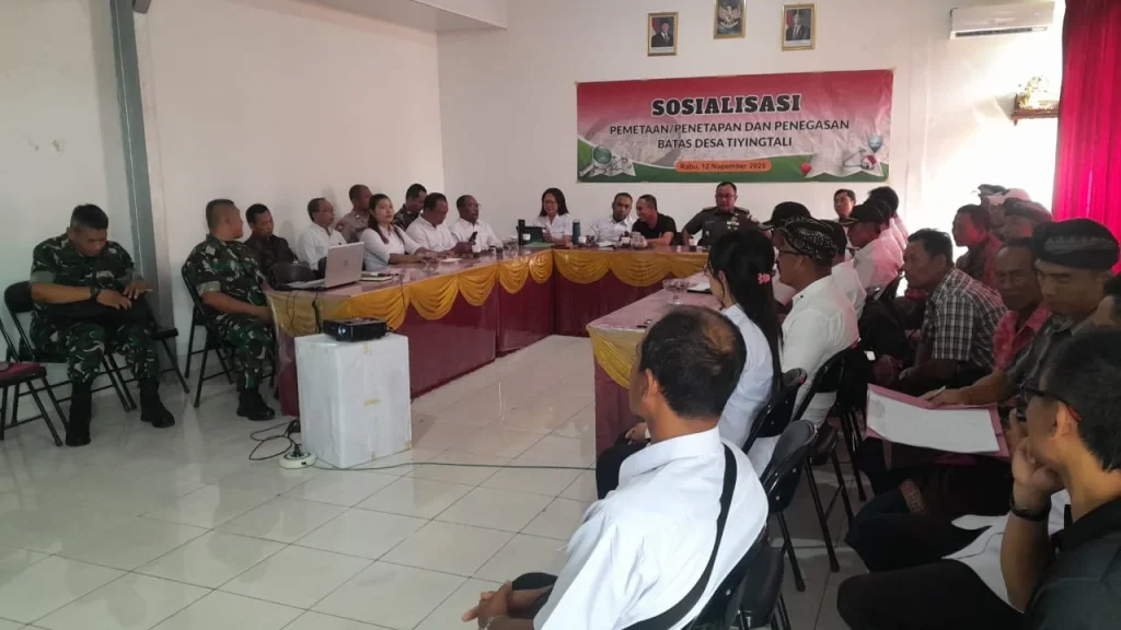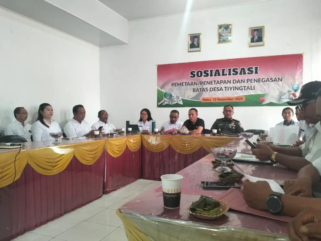 Tiyingtali, 12 November 2025 — Pemerintah Desa Tiyingtali hari ini melaksanakan kegiatan Sosialisasi Penegasan Batas Desa yang bertempat di Kantor Desa Tiyingtali. Kegiatan ini merupakan langkah awal dalam proses penegasan batas wilayah administrasi Desa Tiyingtali sebagai upaya untuk memperjelas dan menetapkan batas desa secara resmi sesuai dengan peraturan yang berlaku.